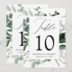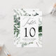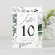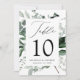 Cartes de table élégantes et botaniques mariage, portant le numéro de table, vos noms et la date du mariage, nichées dans un cadre rectangulaire entouré d'eucalyptus, de fougères et d'autres riches espaces verts. Personnalisez le numéro de chaque carte de table et ajoutez-le à votre panier. Les cartes de table 5x7 ont été conçues pour être coordonnées avec notre collection de mariages Abundant Green.