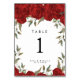 carte de numéro de table du mariage de roses rouge