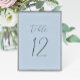 Moderne et minimaliste, la carte de numéro de table de mariage comporte un arrière - plan bleu poussiéreux et une police de script romantique. Créez autant de numéros de table que vous le souhaitez en changeant le "12" à votre numéro souhaité et en ajoutant 1 article à votre panier. Répétez pour autant de numéros de table nécessaires avec le modèle facile à modifier. Consultez les articles correspondants dans la collection "Blue Eucalyptus".