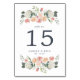 Jardin chic carte de numéro de table comprennent des bordures haut et bas de rose d'aquarelle peinte douce et des fleurs de pivoine dans les tons rose pâle, pêche, crème et vert sauge, encadrant votre numéro de table, la date de l'événement et le texte personnalisé supplémentaire. Le design se répète à l'envers. Coordonné avec notre élégante suite de faire-part de mariage florales Midsummer.