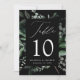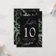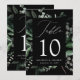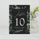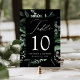 Cartes de table élégantes et botaniques mariage, portant le numéro de table, vos noms et la date du mariage, nichées dans un cadre rectangulaire entouré d'eucalyptus, fougères et autres riches verdure avec un arrière - plan noir. Personnalisez le numéro de chaque carte de table et ajoutez-le à votre panier. Les cartes de table 5x7 ont été conçues pour être coordonnées avec notre collection de mariages Abundant Green.