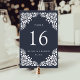 Les cartes numériques Art déco chic de table sont ornées d'un riche arrière - plan bleu minuit orné de détails découpés en dentelle blanche de style picado aux coins. Personnalisez avec vos noms et votre date de mariage, ou nommez chaque table pour une touche personnelle supplémentaire. Le design se répète à l'envers. Coordonnée avec notre suite de faire-part de mariage Beaux-Arts à Ink.