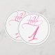 Idéal pour les réceptions de fêtes et de mariages, ces cartes de numéro de table ronde 1 en écriture calligraphique rose élégante en noir et blanc sont simples et sophistiquées, et s'accorderont avec de nombreux styles de fleurs et de décorations de mariage différents.