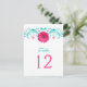 Carte de numéro de table rose Gerbera Daisy Turquo