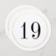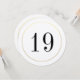 Numéro de table noir et blanc classique sur un cercle en papier brillant épais découpé avec bordure en or. Plusieurs types de papier, carré ou angles arrondis sont également disponibles.
