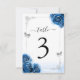 Utilisez ce modèle do-it-yourself unique et simple pour créer vos propres numéros de table élégants pour n'importe quel thème de fête bleu et argent royal. L'art de conte de fées original de Raphaela Wilson met en valeur des roses d'aquarelle douce dans de jolies nuances de bleu avec des accents d'argent faux métallique, des confettis de papillon étincelant à la parties scintillant, et des bordures fantaisistes. La belle princesse argentée tiara / couronne reine ajoute un glamour luxueux supplémentaire à ce cool une fois sur un thème de temps sur le côté arrière. Ces cartes de table à modèle papillon floral peuvent être personnalisées plus simplement en changeant la calligraphie script moderne à un style typographique chic qui convient le mieux à votre vision. De plus, ces cartes de numéro de table modèle faciles à éditer peuvent embellir le décor de réception non seulement pour les mariages élégants, mais aussi pour un coing bleu royal / quinceañera, Cendrillon doux 16 anniversaire, douche de mariée princesse conte de fées, baby shower rose pour une fille et d'autres célébrations importantes. Ajoutez des cartes avec des supports de cartes de table en acrylique ou en argent pour ajouter de l'éclat à ces petits panneaux, et gardez les choses simples pour les arrangements de sièges invités, profitez! Catégorie : papier à lettres de la table de la quinceanera bleue royale imprimable; cartes de table de mariage élégantes avec papillons / fleurs; et invitations de mariage avec numéros de table. Couleurs du thème Royal blue party : saphir bleu foncé, bleu moyen, gris clair, faux argent métallique, noir et blanc.