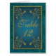 Carte de numéro de table Turquoise Gold