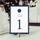 Les cartes de table monogramme simples et élégantes comportent une double bordure et un badge monogramme circulaire en bleu marine et blanc classique.