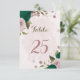 Belle carte de numéro de table romantique avec des fleurs vert émeraude et rose et quelques feuilles. POUR PLUS DE PRODUITS CORRESPONDANTS cliquez sur la collection ci-dessus ou contactez-moi
