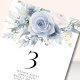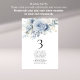 Blue Florals Noms de siège Carte de numéro de tableau de tableau. Modifiez le numéro de chaque table et ajoutez-le séparément à votre panier. Même design sur les deux côtés, utilisé pour un affichage suspendu afin que les clients puissent trouver leur siège ou l'affichage sur chaque table. De belles fleurs bleues poussiéreuses sont au sommet. Personnalisez facilement le numéro de table et vos noms d'invités. La même conception est de part et d'autre et se met à jour simultanément lorsque vous changez les mots en votre propre nom.