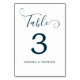 Numéro de table de mariage simple et élégant modèle avec élément de script romantique moderne, numéro de table modifiable et nom de mariage personnalisé en bleu turquoise profond. Le texte est imprimé à parts égales à l'avant et à l'arrière de la carte. Le design minimaliste de ces cartes numériques ajoutera une touche design à vos décorations de table mariages sans les dominer. © y.BEE MARIAGES