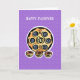 Conception de Pesach de pâque montrant les verres sedar de plat et de vin. Sur le dessus de la conception sont la pâque heureuse des mots ". "L'intérieur lit la pâque heureuse de "" - de notre maison au vôtre."