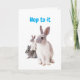 Cette carte de Pâques a trois lapins au milieu de la carte. Le texte bleu ciel avant dit : "Allez-y". A l'intérieur, on peut lire "Et passez une bonne Pâques !" A l'intérieur à gauche est bleu ciel. Le texte est bleu ciel sur blanc. Customisez cette carte ou achetez tel quel.