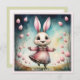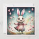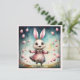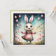 Carte Pâques mignonne avec une jolie fille lapin conte de fées dans les fleurs du printemps. Couleurs rose, bleu, vert. Le texte et les fleurs à l'arrière. Personnalisez facilement tout le texte ou laissez-en une partie vide. - Kate Eden Art