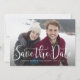 Vous êtes fiancés ! Partagez votre bonne nouvelle et la date de votre grand jour avec cette carte de sauvegarde de date à une photo. Votre photo de fiançailles sera la star du spectacle sur fond de script blanc simple "save the date" et le support légèrement pointillé peut être facilement changé en une couleur qui s'accorde avec votre photo ou votre mariage en cliquant sur le bouton "personnaliser". Que le bonheur éternel commence !