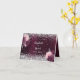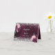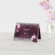Décoré de fleurs en bordeaux et rose, faux confettis argenté. Un profond arrière - plan de dégradé bordeaux. Personnalisez et vos noms et la date du mariage. Les noms sont écrits avec un script de style à la main moderne et élégant. Retour : espace pour écrire à la main le nom de vos invités et le numéro de table. Arrière - plan Bourgogne Intérieur : de couleur bordeaux.