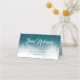 Un lavis décoratif aquarelle sarcelle dégradée sert de fond pour ce marque-place d'occasion spéciale. Utiliser pour un mariage, une douche de mariée, Quinceañera, Sweet sixteen, fête d'anniversaire, bal de promo ou rentrée scolaire, ou un événement d'entreprise. Peut être utilisé comme des cartes de placement ou des cartes de buffet. Disponible avec des produits assortis.