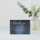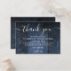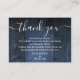 Un élégant mariage en bois de grange bleu rustique vous remercie la carte de réception, personnalisée avec un message spécial et les noms de la mariée et du marié. Conçu par Thisisnotme©