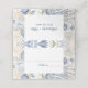 Introduce guests to their seats with this elegant Dusty Blue and Gold Coastal Tent Place Card. This unique design perfectly merges soft watercolor marine life in blue and sage green with a delicate faux gold coral border. Ideal for a Coastal Wedding, upscale Beach Reception, or Nautical-themed event, this foldable place card adds a luxurious touch to any table setting. The card clearly displays the couple's names and date, and provides space for the Table No and guest name. Customize this template for your seaside celebration!