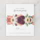 Fleuron rustique coloré en bordeaux, pêche, rose et blanc cassé le bord supérieur de cette belle carte de place pliée. Les fleurs comprennent des pivoines, des roses et des anémones avec de la verdure et des sprigs fleurs sauvages. Le texte facultatif a été ajouté pour accueillir une réception de mariage, des banquets et des événements qui utilisent des sièges numérotés. Ce texte facultatif peut être supprimé si vous souhaitez utiliser ces cartes pour divertir de petits groupes.