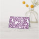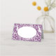 Jolies et élégantes silhouettes botaniques florales de la nature, feuillage blanc, feuilles et fleurs sur un arrière - plan violet. Coordonner les cartes de lieux vides pour écrire vos noms d'invités à la main.