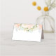 Bouquets de pêche pâle à l'aquarelle rose avec cartes de place pliées vertes assorties. Personnalisez avec votre nom d'invité et votre numéro de table