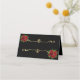 Cette carte de place pliée est présentée dans un arrière - plan de couleur noire de base avec une belle rose rouge festive et une empreinte sainte. Customisez cet article ou juste en l'état et écrivez le nom à la main dans.