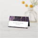 Cartes de placement du Mariage d'âge violet et or. Faux confetti en feuille d'or et pinceau. Couleurs de police de script avec une police de nom serif facile à lire. Facile à adapter à vos besoins mariages. Cartes de nom personnalisées.