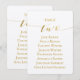 Carte de placement de mariage à calligraphie dorée