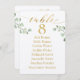 Écriture calligraphique noire avec empattements sur papier blanc croquant pour cartes de tableau de table.