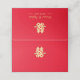 Conçu dans le cadre de la suite mariage "Double Happiness", cette carte de séjour présente le double bonheur des symboles chinois face à une couleur arrière - plan rouge, à la fois sur le devant et le dos de la carte. Avec un stylo métallique à encre or et dans votre meilleure écriture, ajoutez le nom de votre invité et le numéro de table (si nécessaire) à l'avant de la carte sous le symbole. Au verso de la carte, vous pourrez ajouter le nom de la mariée et du marié ainsi que la date. L'intérieur de la carte est de couleur or. Un design parfait, particulièrement pour une table mariage chinoise.