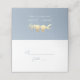 Carte mariage romantique avec deux tourterelles à l'air doré sur un arrière - plan bleu poussiéreux. Une police de script élégante pour les noms et la date ajoute une touche personnelle et douce. Parfait pour attribuer des sièges de réception avec style et charme. Coordonné avec la suite mariage Dusty Blue et Gold Lovebirds pour un look d'événement cohérent. Facilement personnalisable avec les noms d'hôtes pour un affichage poli.