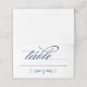 Elégante carte de place d'escorte pliée en blanc (couleur arrière - plan peut être customisée) et bleu marine. Comprend l'écriture de script de calligraphie et l'accent de conception de défilement.