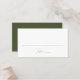 Cartes mariages modernes avec un script de calligraphie vert olive sur un arrière - plan blanc. L'arrière des cartes d'endroit vert olive comporte vos initiales monogrammes avec votre date de mariage indiquée ci-dessous. Les élégantes cartes de place de script sont parfaites pour des réceptions de mariage modernes, des dîners de répétition et d'autres événements spéciaux.