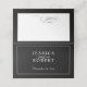 Bordure élégante modifiable avec nom de mariée et de marié de marque. Script de table facultatif au verso, pour écrire le nom et le numéro de table des invités.
