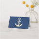 Customisez cette Elegant Nautical Mariage Navy Invitation Place Card pour donner la touche finale à votre réception de mariage. Ancrage bleu marine sur un arrière - plan blanc à l'avant. Ajoutez facilement le nom et le numéro de table. Arrière - plan bleu marine avec ancre blanche et corde dorée sur le dos.