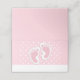 Cartes de place pliées avec une adorable image d'empreintes de filles roses avec un contour blanc épais. Pois blancs sur un arrière - plan rose derrière l'illustration.