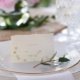 Elégante place les cartes en blanc et faux or, avec des confettis éparpillés à travers l'arrière - plan.