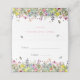 Bohème, joli et élégant, ce carton de table plié pour fête prénatale présente un champ coloré de fleurs sauvages délicates avec des papillons, des bourdons et des coccinelles.