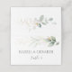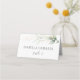 Carte de place élégante pliée avec illustration de feuillage vert et or dans le style aquarelle.