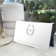 Carte De Placement Feuille ovale monogramme bleu mariage blanc