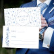 Elégante carte à plat mariage bleu marine botanique, avec les noms exquis de mariée et de mariée sur le dos.