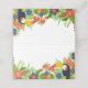 Carte blanche avec toucan, plantes tropicaux et fleurs tropicales.