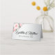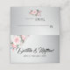 Élégante et luxueuse carte de table mariage argentée, elle présente un thème argenté avec des roses roses et un bouquet de rose plus petit sur le dos.