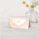 Un arrière - plan d'aquarelle dans les tons or rose est surmonté d'une abstraite de lignes dorées fines et d'effets lumineux scintillants pour créer les pièces de cette belle suite mariage. La carte de place de la table mariage présentée ici présente également un beau cadre en dégradé sur l'avant pour contenir les noms d'invités et les numéros de table. Ajoutez facilement vos propres noms et la date du mariage au verso à l'aide du modèle fourni. Recherchez ID867 pour voir d'autres pièces et choix de couleurs pour cet ensemble.