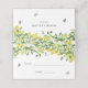 Bohémienne, moderne et estivale, cette carte de lieu pliée mariage présente des branches de citronniers aux couleurs vives, avec des papillons volant autour. Vous pouvez customiser tous les détails du texte et du placement graphique à vos besoins spécifiques.