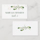 Élégante carte de place plane avec une illustration de gui et de feuillage doré dans le style aquarelle.