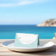 Ce design comprend un salon de réception de mariage, avec une carte de place minimaliste et élégante, avec un nom de table lunatique, parfait pour la plage de destination de sable tropical design.