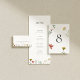 Introduire la Faire-part de mariage "Leander" - un témoignage de l'élégance minimaliste avec une touche de jardin fantaisiste. Au coeur de ce design se trouve une toile blanche immaculée, offrant un cadre serein qui évoque une grâce intemporelle. La typographie, une police serif soigneusement choisie, est centrée - son style classique exubérant le raffinement tout en restant merveilleusement sobre. Ce qui distingue véritablement le Leander, c'est l'adoption délicate d'illustrations fleurs sauvages qui encadrent le texte. Ces minuscules détails floraux espacés sont plus que de simples décorations ; ils sont un clin d'oeil subtil à un jardin fantaisiste, apportant une sensation organique et terne au design. L'esthétique générale de l'invitation Leander est celle d'une fantaisie minimaliste - un équilibre parfait entre simplicité et enchantement. C'est une invitation conçue non seulement pour annoncer votre journée spéciale, mais pour incarner l'esprit d'amour, de nature et d'élégance sous-jacente.