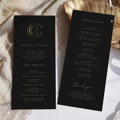 Guidez vos invités à leurs sièges avec la "Gold Black Moon Mariage Place Card", sur un fond noir séduisant. La lune et les étoiles du croissant d'or, associées aux initiales élégamment simples personnalisables du couple, deviennent des marqueurs célestes. Les phases de lune subtilement incorporées dans la conception symbolisent l'emplacement unique de chaque invité, créant un agencement céleste de sièges.